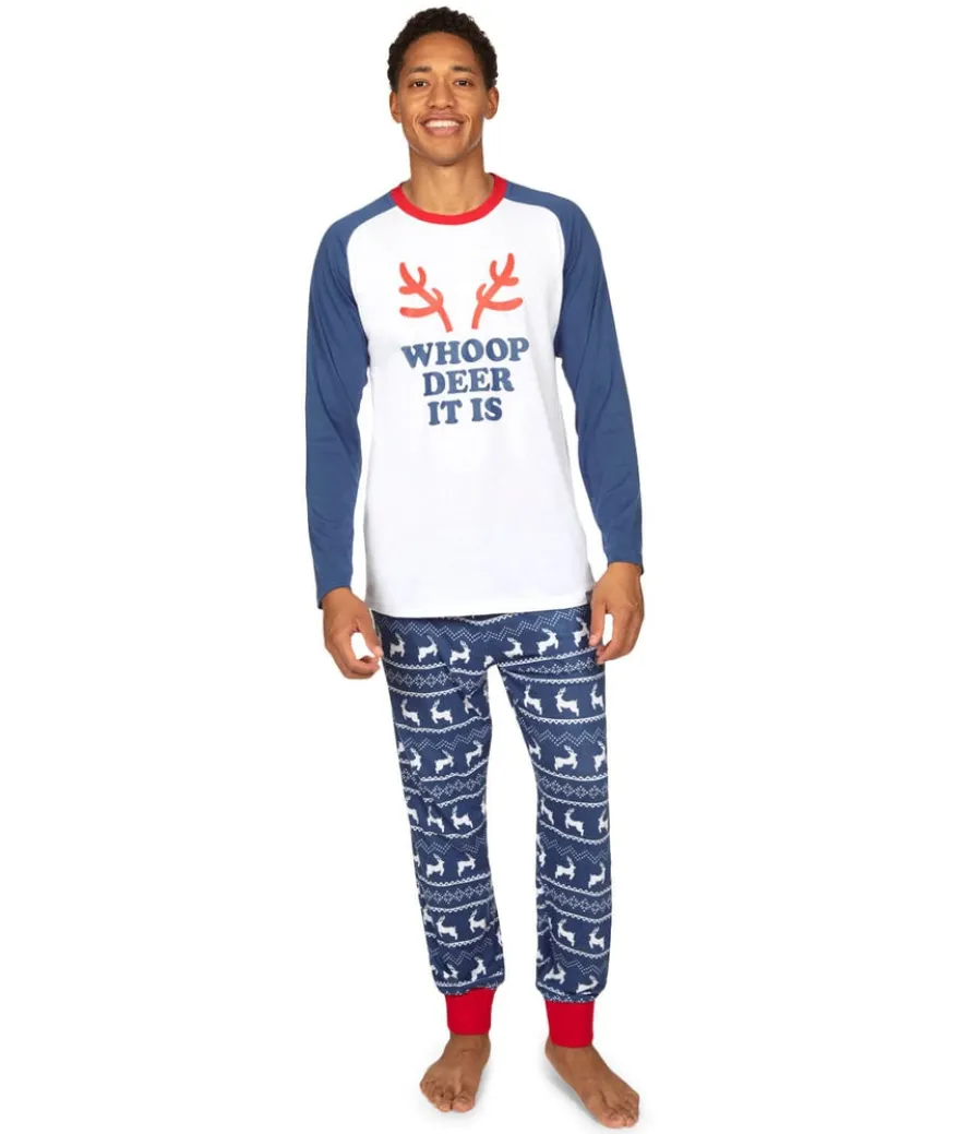 Christmastime is full of whoopsies. Especially when you don’t Christmas shop until December 23rd – and at that point, we can’t say you have anybody to blame but yourself. Might as well own it and rock the Men’s Whoop Deer it is Pajama Set. We tried real hard to hide it, but – whoop, deer it is.