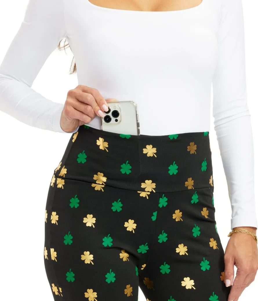 Any sisterhood of traveling pants has nothing on these babies. It’s about time you stop stepping in unfortunate things and step right into luck in the My Lucky Metallic Flare Leggings! With a silhouette that flatters covered in clovers that never falter, you officially have permission to rock this pair on St. Patrick’s Day and beyond.