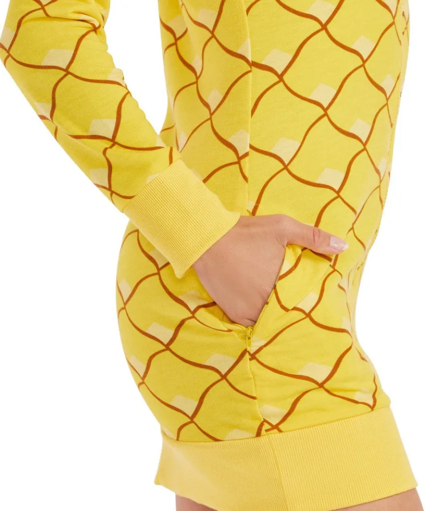 Feeling tropical this fall? Hula girl outfits are so last season. You need to get juicy with this pineapple dress costume. It’s got almost a seventies disco vibe with the diamond pattern and the spiky hood. This outfit isn’t rainforest proof, but the hoodie does help protect you if it’s drizzling in late October-or if someone is inspired to set off a glitter bomb in your vicinity. You’ll feel like a princess wearing a green tiara and adorned with gold when you slip into this zip-up dress. We think it looks great with strappy heels and a gold anklet. After all, if you’re pineapple shaped you want to draw attention to your stems.