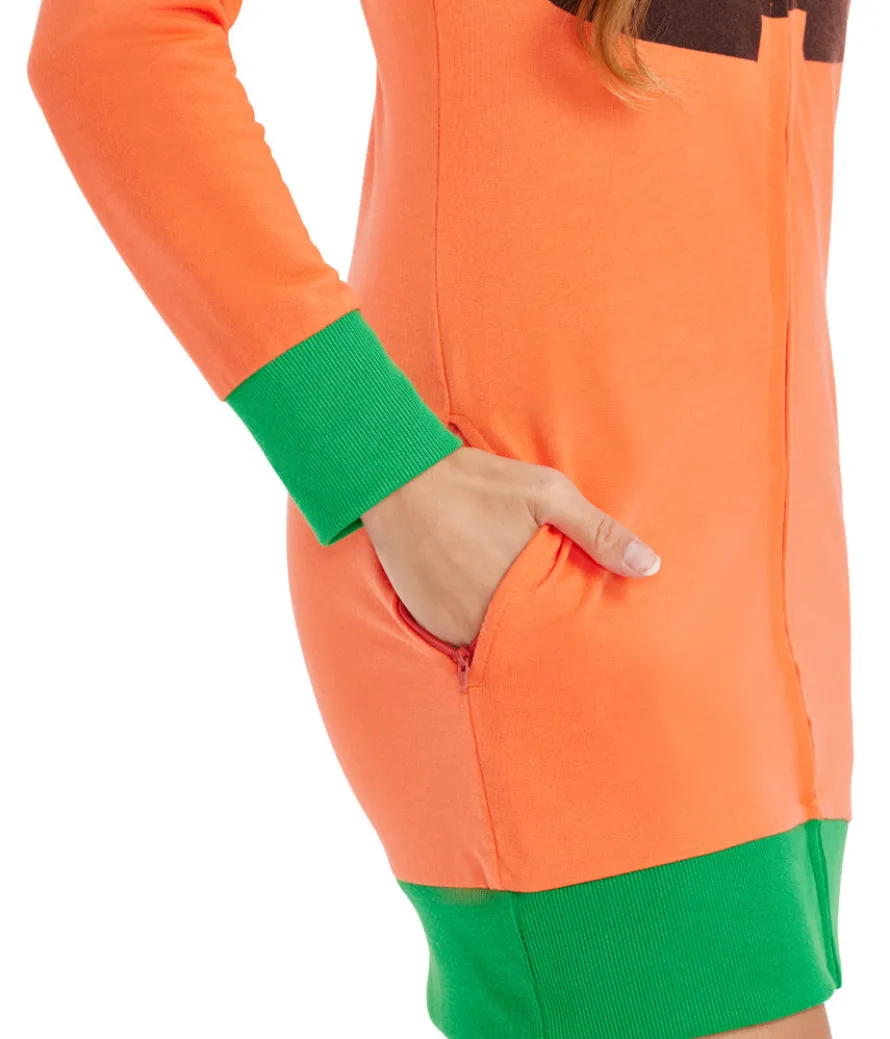 Calling all Cinderellas: want to turn into a pumpkin without waiting until the stroke of midnight? This Halloween, get your hands on this women’s pumpkin costume, which is as comfortable as it is cute. If the idea of a pumpkin Halloween costume has you shuddering at the thought of hauling a huge orange fruit around, this cutesy dress is the perfect alternative pumpkin costume. It comes with its own winking pumpkin carving motif and eye-catching sleeves and hems, making sure you’ll be spotted wherever you are, from trawling the neighborhoods in search of candy to getting your groove on at a Halloween party. To finish the look, this charming pumpkin costume has a leafy green hood top, which you can huddle into if you’re hungover or lounging around the house. It’s even got a large front zipper – just make sure you use this to store candy rather than lit candles.