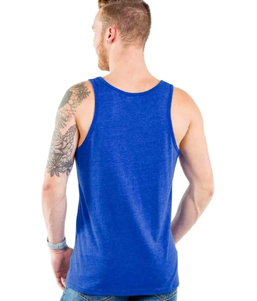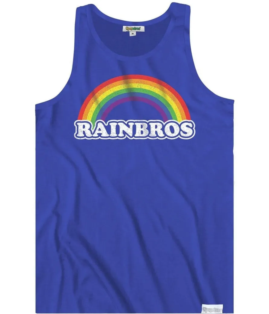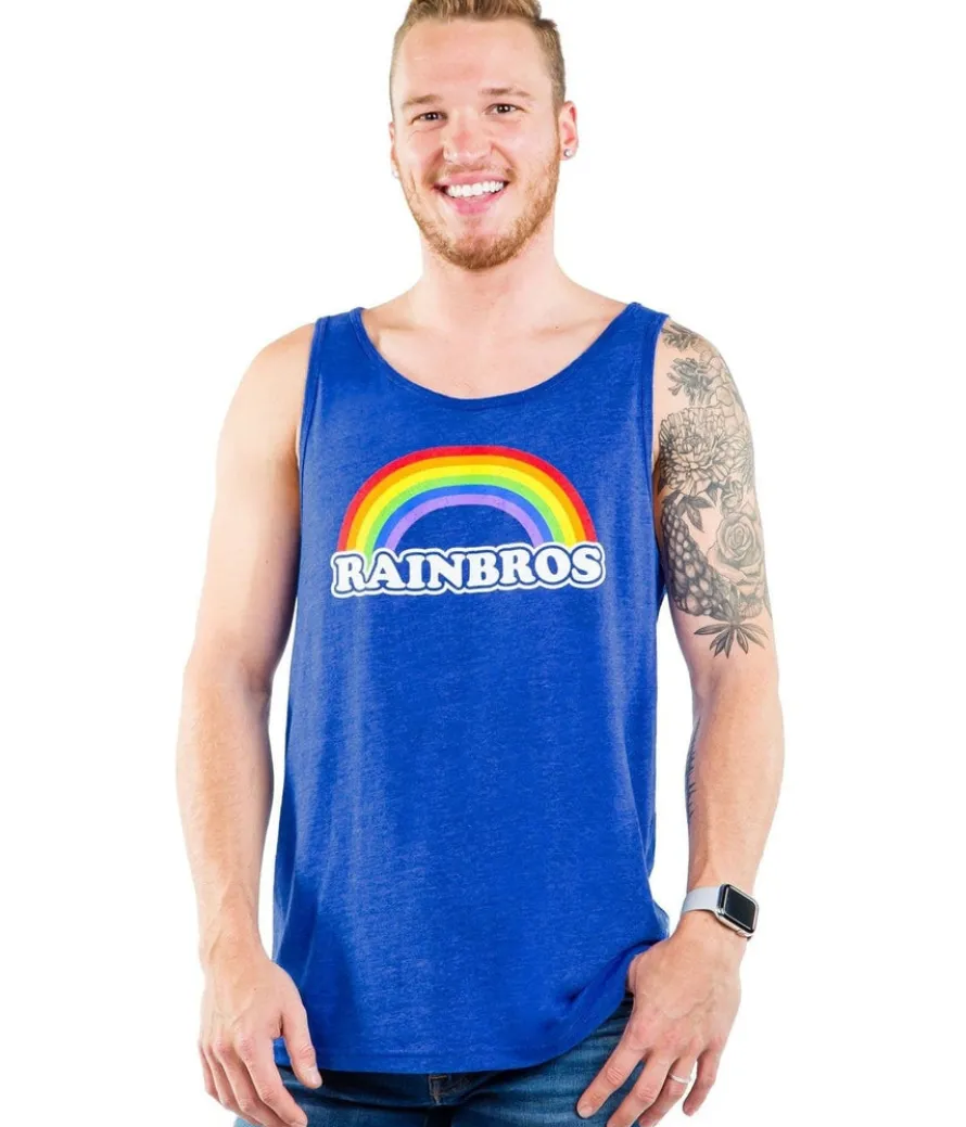 Somewhere over the rainbow blue birds fly and well-dressed people gather to celebrate their sartorial sass. The Blue Rainbros Tank Top, available in electric blue with an eye-catching rainbow design, showcases your solidarity.