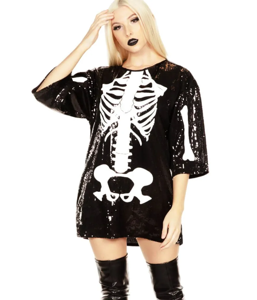 We can think of 206 reasons why this Sequined Skeleton Costume Dress is the perfect outfit for you this Halloween. (Hint: it has to do with the number of bones in the human body.) It’s sleek, sparkly, and sure to highlight the best a body has to offer. The top half, at least. But no matter. True beauty is found on the inside, right?