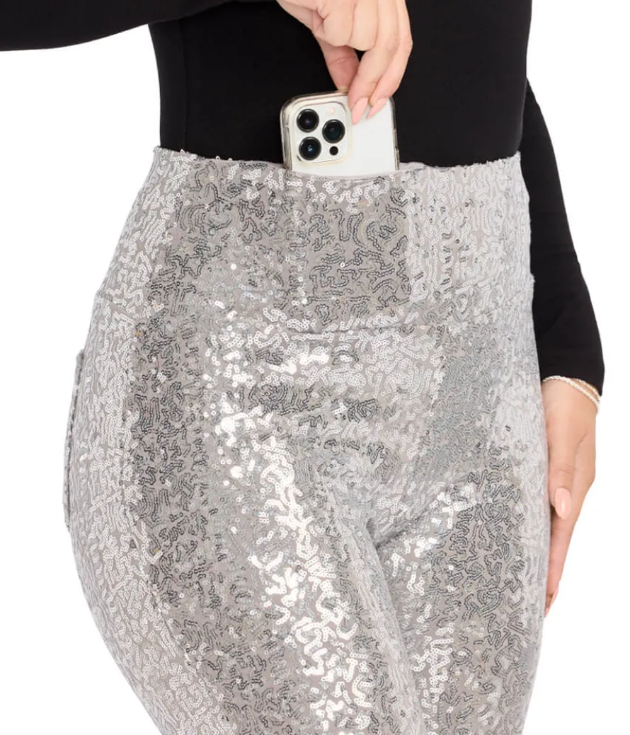 Gleam and glisten into any room in the most classic colored sequin of them all – silver, of course. The Silver Sequin Flare Leggings will catch every eye and remind everyone in the room that they’re the OG glitter girl. And you know what they say, you are what you wear.