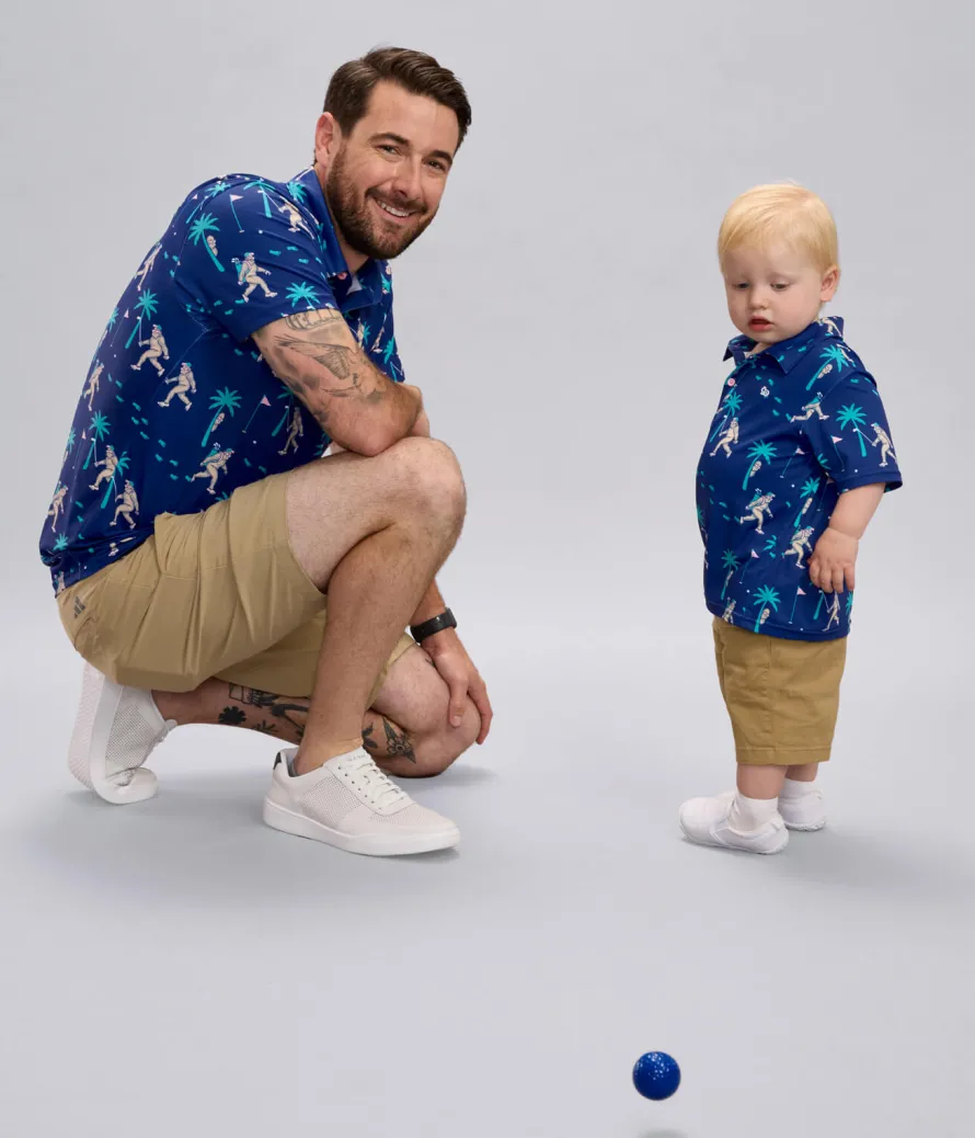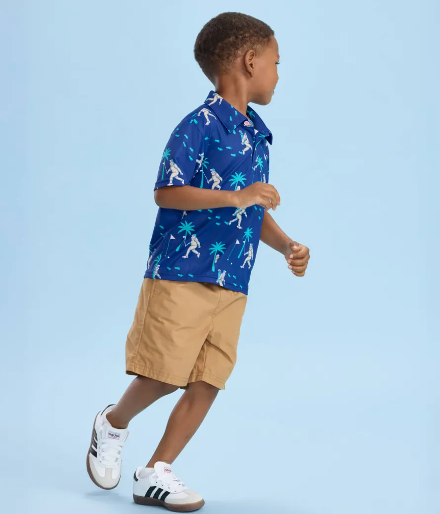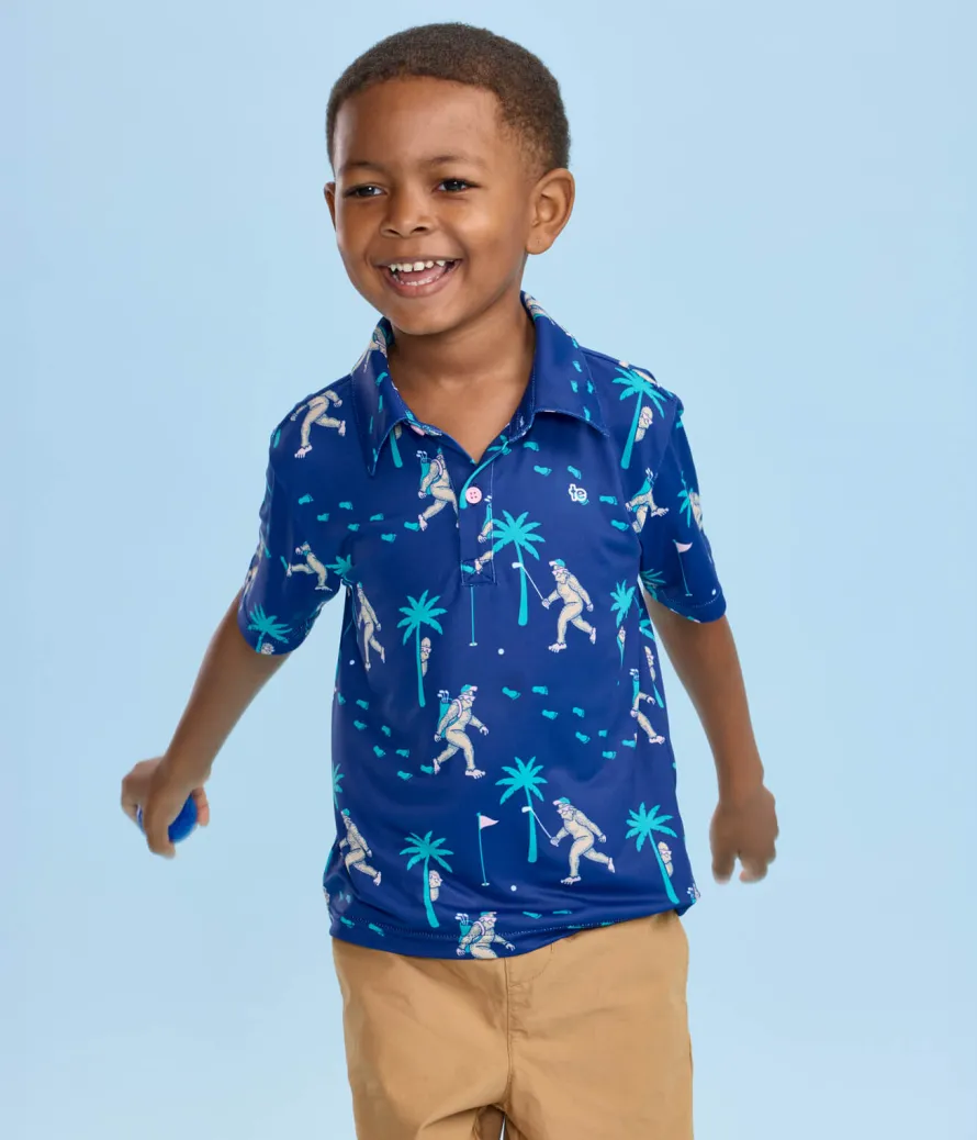 Legendary comfort for your little golfer! The Toddler Boy’s Bigfoot Bogey Golf Polo is crafted with soft, lightweight, moisture-wicking fabric to keep him comfortable while playing, running, or just moving through the woods in an illusive, blurry sort of way. The fun Bigfoot design adds a playful touch, making this a must-have for any future fairway legend.