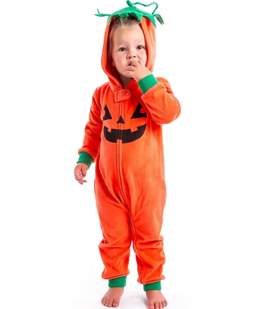 Get your little one ready for trick-or-treating with this cute pumpkin costume! Made of soft onesie material, it’s perfect for keeping them cozy and adorable on Halloween night. Don’t miss out on the cutest pumpkin in the patch!