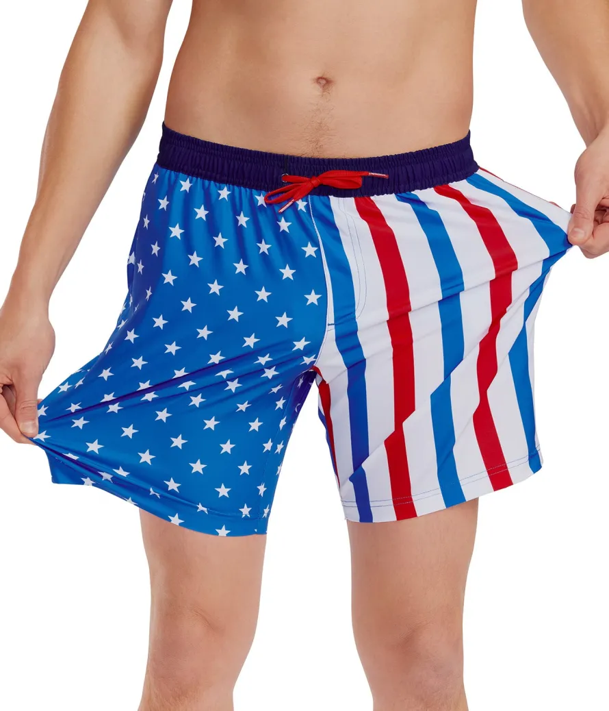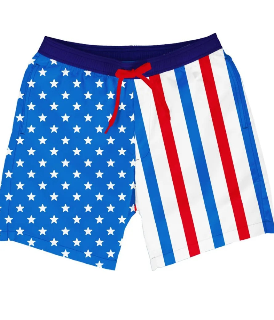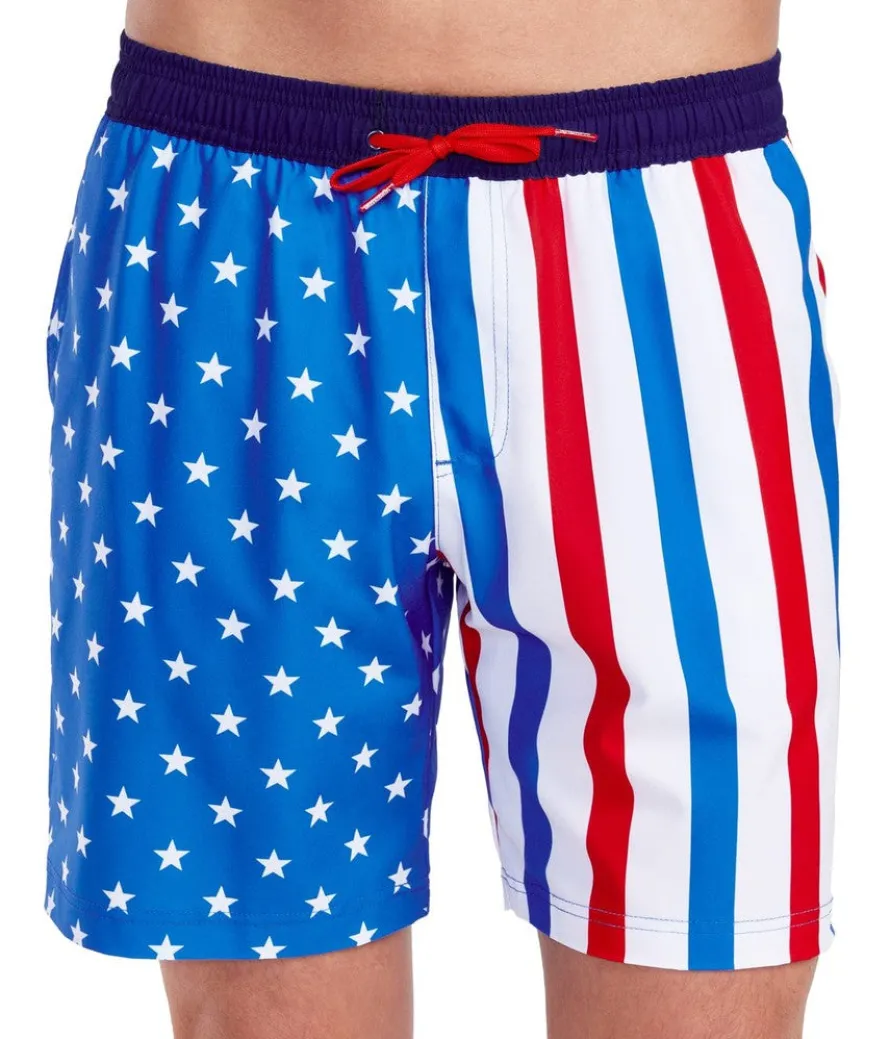 Business in the front, party in the back? Nah. Flag on the left, stars on the right. The American flag is simply too inspiring to stick to one solid print. Plus, patriotic holidays are all about being loud and proud. Keep it loud even while underwater with the contrasting legs of the United Stripes Stretch Swim Trunks!