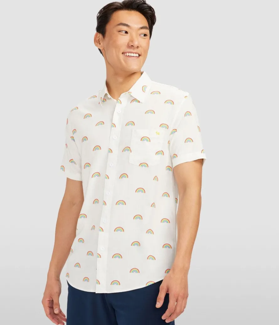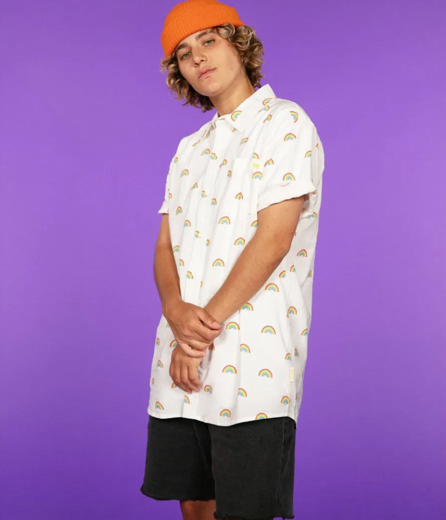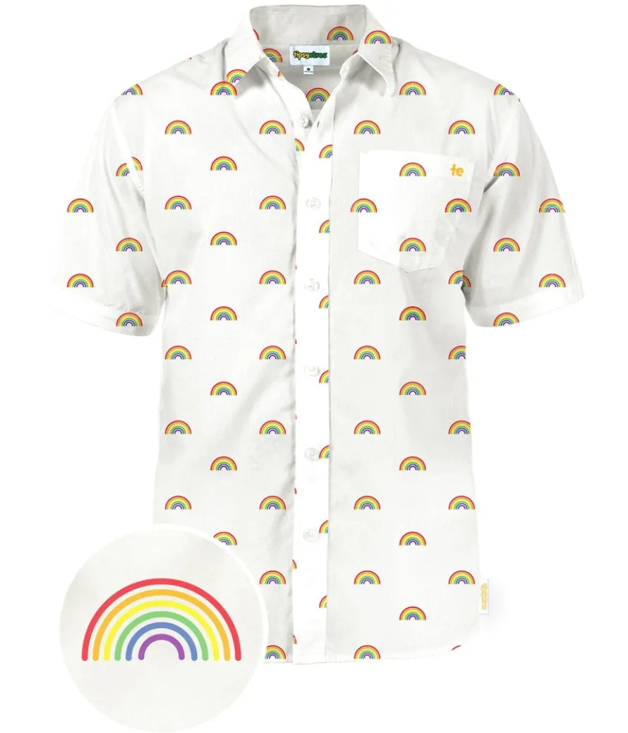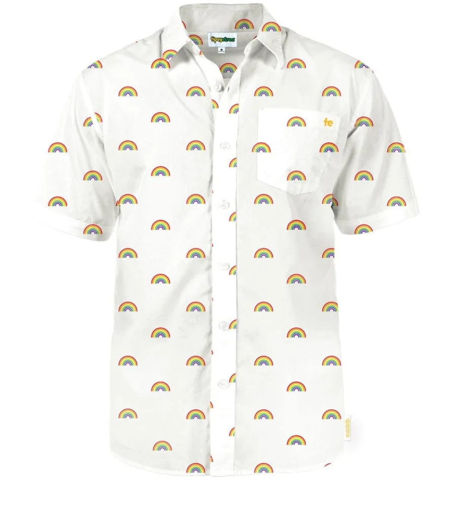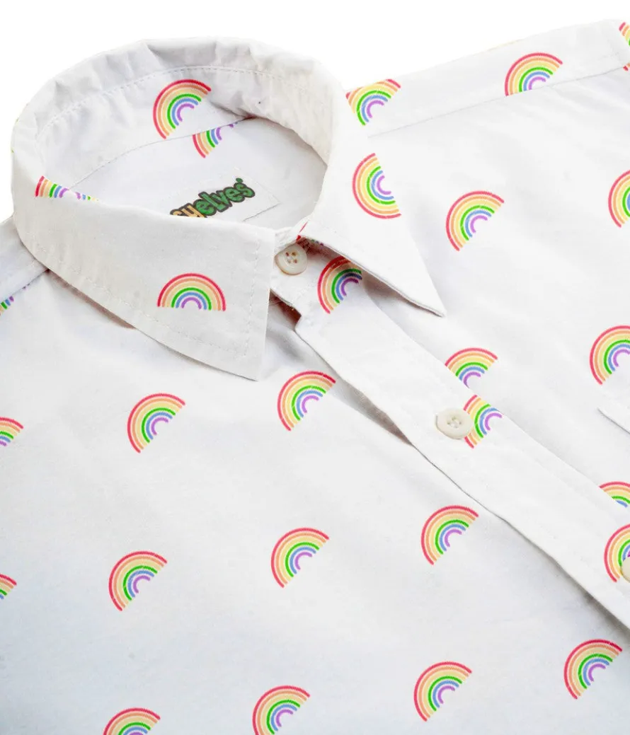 Somewhere over the rainbow…there’s probably another one hovering in the distance with this White Rainbow Button-Down Shirt. From afar, it could just be another corporate shirt that wouldn’t look out of place in a formal meeting. But up close, eagle-eyed admirers will realize that this shirt is a declaration of your Pride. Wear it to the celebrations to bring a touch of your own class to the show. And just a hint of sass.