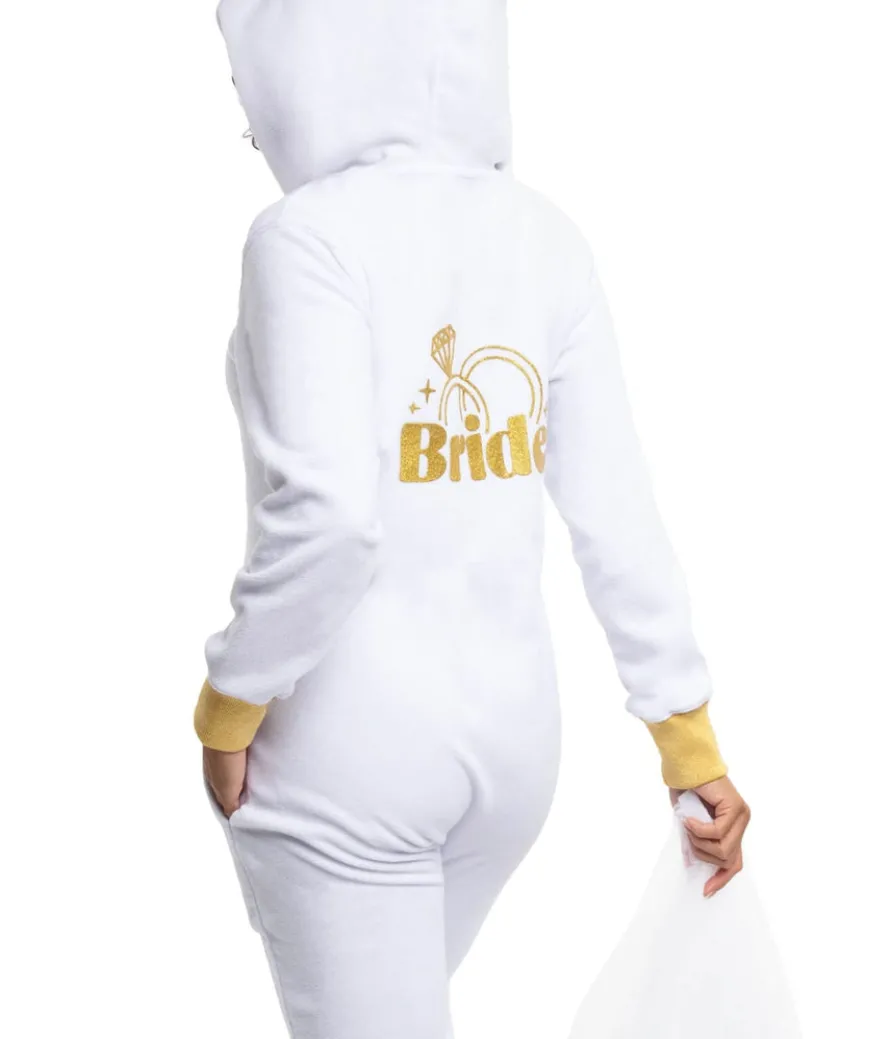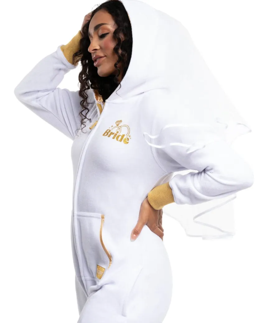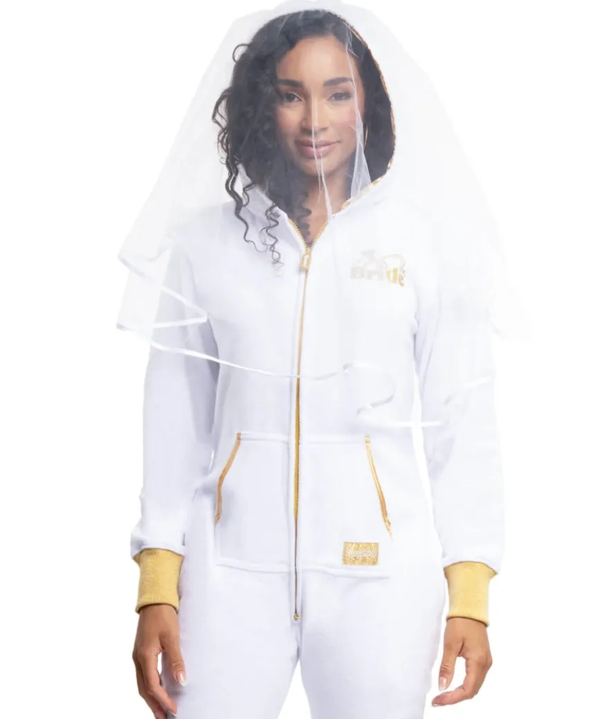 Even on wedding day, comfort wins. The real goal of bachelorette weekend is to make sure everyone who sees you when you’re out and about knows you’re getting married, and it’s mission accomplished in the Women’s Bachelorette Bride Jumpsuit. Unveil your weekend in a veil-adorned jumpsuit to earn you full comfort and congratulations.