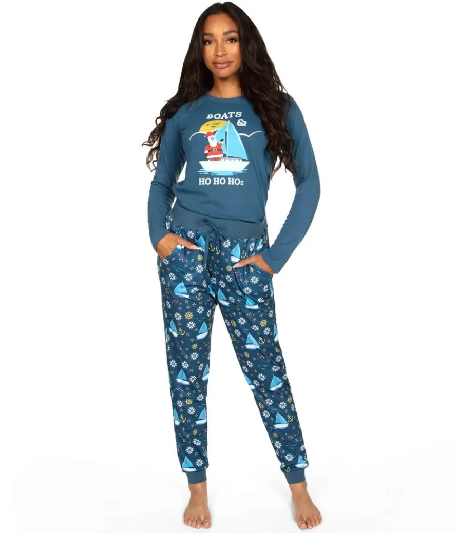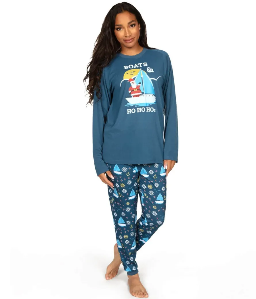 Ain’t no party like a party on the water. Even Santa knows this to be true, and he isn’t shy about it as made obvious on the Women’s Boats & Ho Ho Hos Pajama Set! Though we can’t confirm or deny if this is a paparazzi snapshot, we’re here for Santa having the time of his life around his big work day. If you listen closely near the water the days after Christmas, legend has it you can hear him chuckling his soft “ho, ho ho” in the distance.