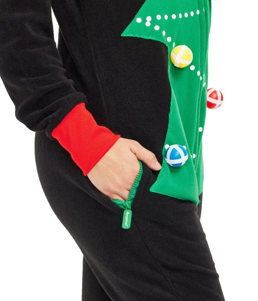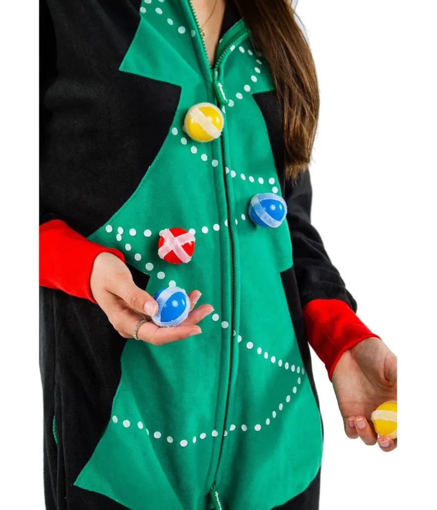 Christmas wouldn’t be Christmas without somebody losing an eye, right? We’re just kidding. This Christmas, we’re dialing up the mischief with this Women’s Christmas Tree Toss Game jumpsuit. How does it work, you ask? Simple – you, the wearer, invite other players to throw the Christmas light ball at you and see if you can use your magic suit to catch it. Don’t be a scrooge – be the games master with this super comfortable jumpsuit. It’s even got a Christmas tree design. Looks like pajamas are suitable for the office.