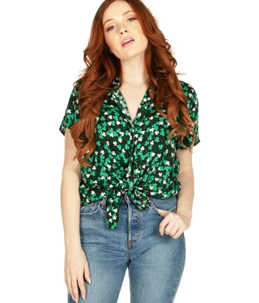 Celebrate in style with this cute and festive women’s Clover Floral Button Down Shirt! The fresh floral pattern is perfect for St. Paddy’s Day revelry—who says you can’t look great and have a good time? (Or, better yet, look great because you’re having a good time!) Enjoy the party in some seriously stylish threads.