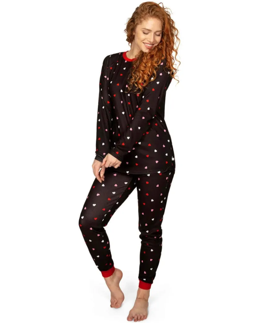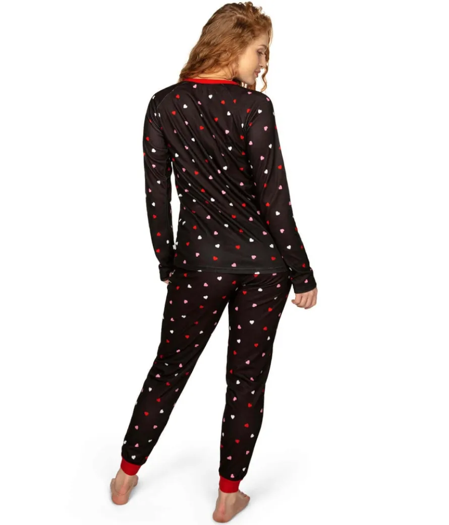 Have you suddenly been doodling in your notebook more than usual? Do you find yourself in a daydream-like daze throughout most of your workweek? Are you having recurring dreams with the same face that you’d dare not tell a soul? You may be suffering from a crush. Embrace it in full-force in the Women’s Crushing Hard Pajama Set, ideal for swinging your feet as you journal entry with your favorite fuzzy pen – or making that first phone call. Even if you hang up, we’re proud of you.
