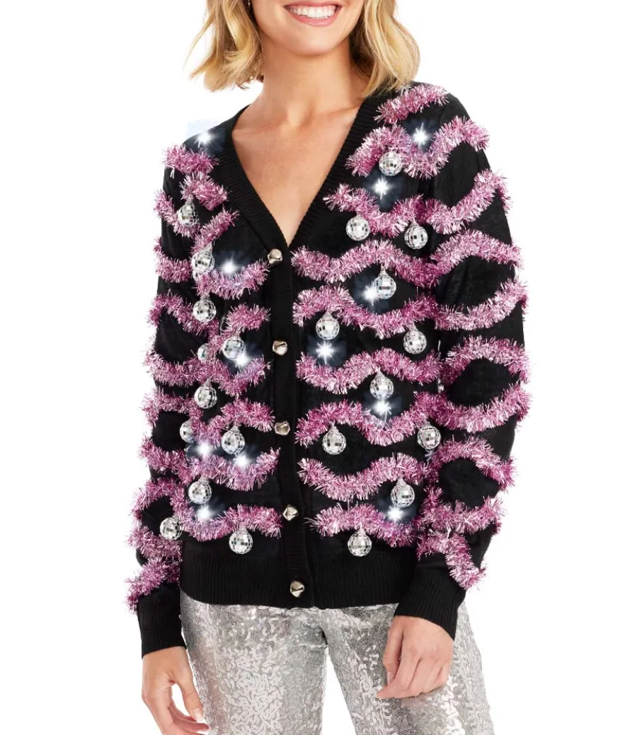 When we deck the halls, we prefer disco balls. We’re girling up the holiday season this year, and we aren’t sorry about it. Make your interior dreams come true on this year’s Christmas sweater in the Women’s Deck The Disco Balls Light Up Cardigan Sweater! A little pink and a whole lotta shimmer make for the ultimate holiday spirit.