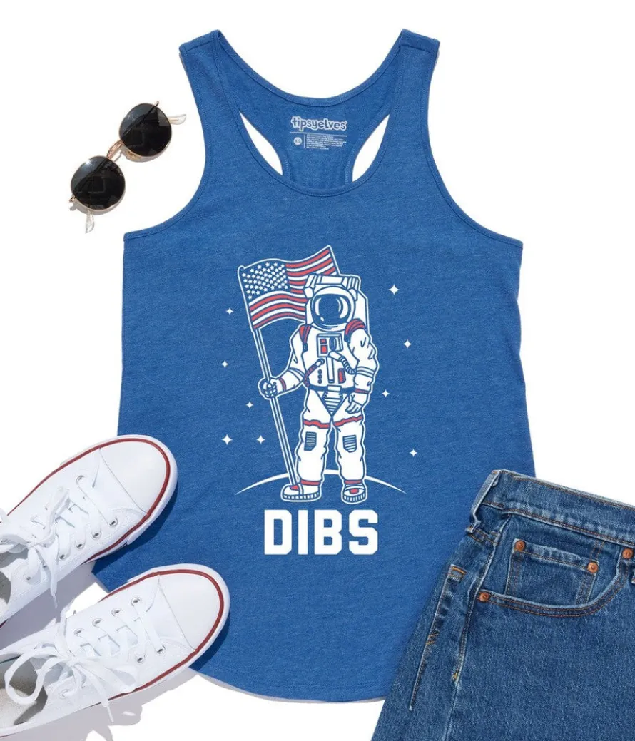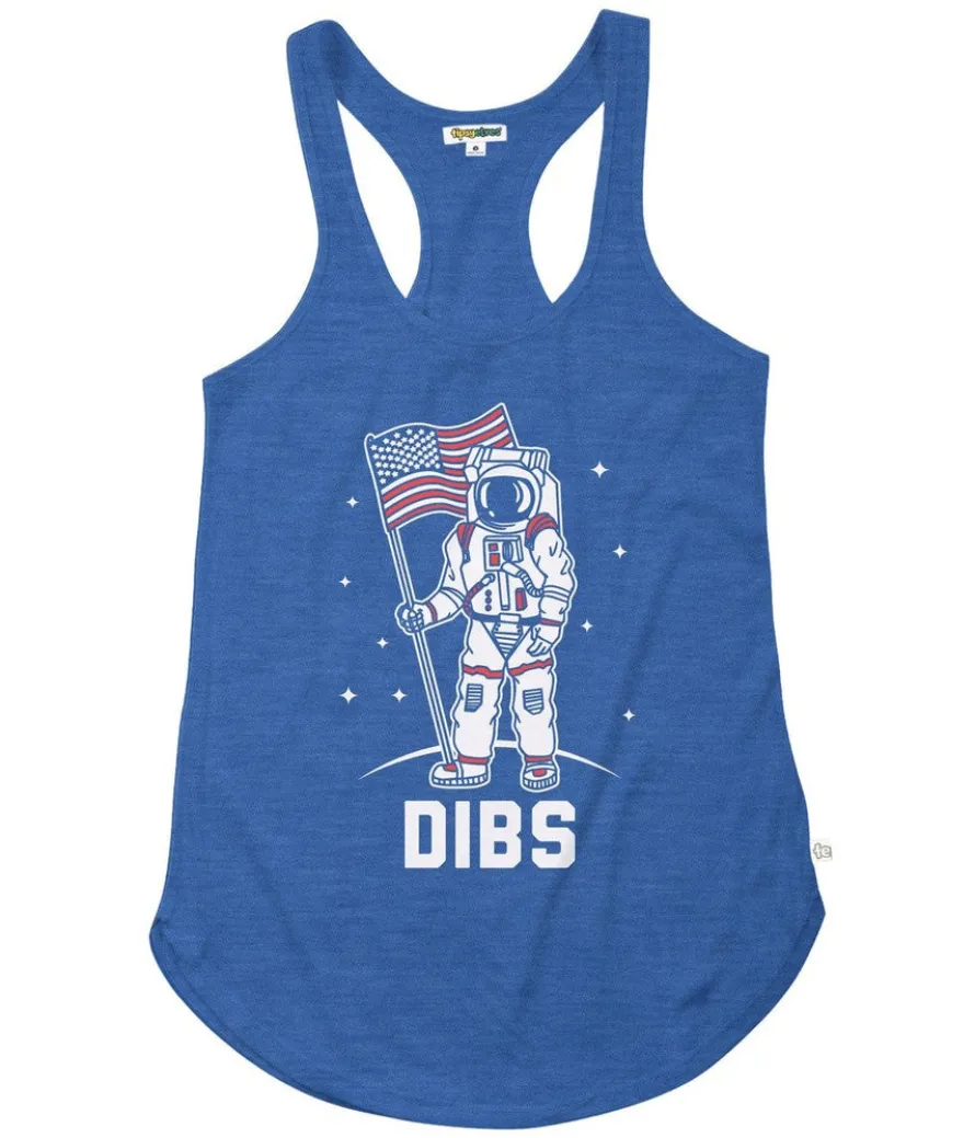 Looking for a look that’s straight stellar? Well the Eagle has landed! Get your Neil Armstrong on (literally) in our Women’s Dibs Tank.