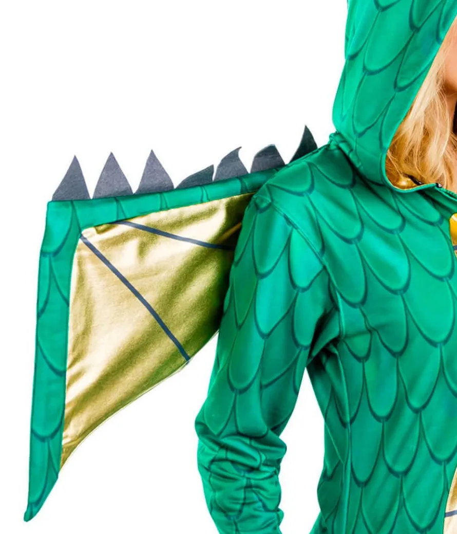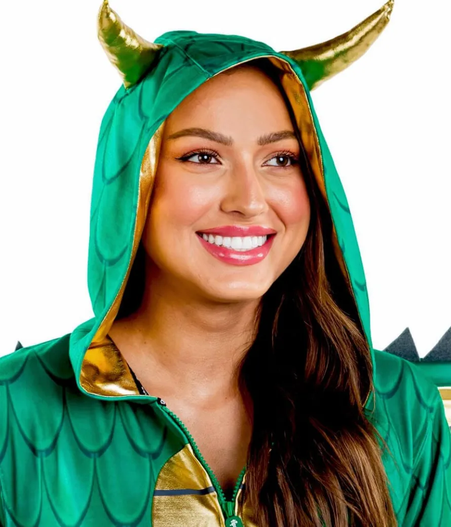 Play with fire and you’re gonna get burned. The mother of dragons is here and she’s taking no prisoners. Our women’s dragon costume is scarier than a mouse and looser than a catsuit. What more could you want? Embrace the nerdy fantasy of breathing fire on your enemies with this super cute jumpsuit. It may look scaly, but we promise it’s warm and fuzzy – great for taking to the streets with trick or treat. Rocking it at a Halloween party? First prize is yours thanks to the incredible attention to detail. It’s got jagged wings, dragon horns, and even a tail if you need to take someone out quickly. Great for the bathroom queues. This green one-piece will allow you to move around freely, and you can even fill it with Halloween candy. There’s no guarantee it will make you glide around castles, but we know you’ll look pretty fly.