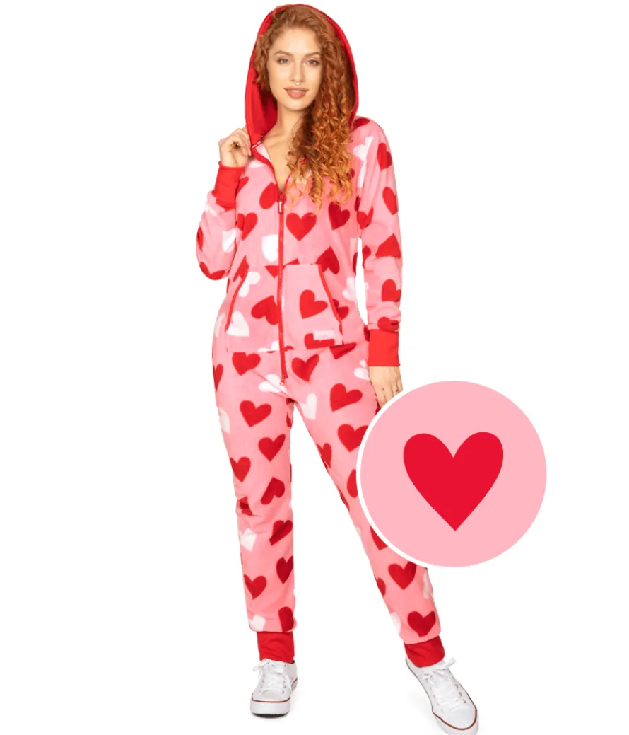 Is your heart half full, or half empty? Neither! Valentine’s Day can bring up tricky emotions, but this year, your heart is completely full. Leave no room for cryptic expressions in the Women’s Full Hearts Jumpsuit, stopping everyone’s curiosity in their tracks. When you’re this fuzzy and this full of love, the only question you’ll get is, “how’d you do that?!”