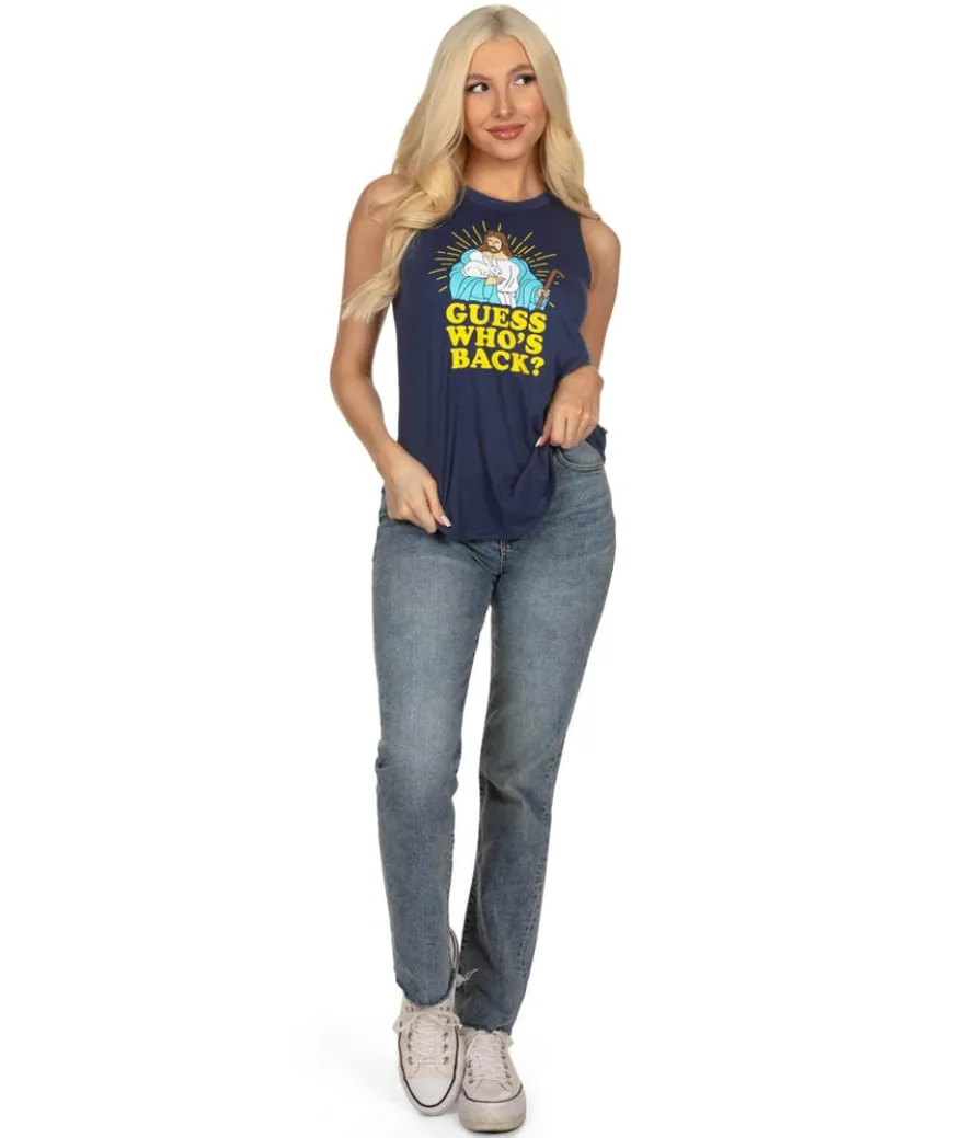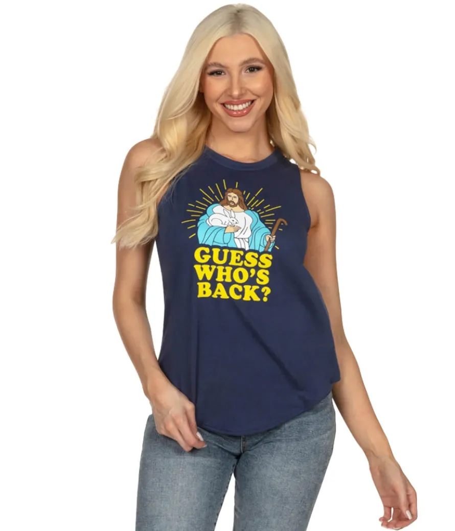 You thought you could get rid of me that easily? Say that with a confident sass as you strut in wearing this Women’s Guess Who’s Back tank top. Featuring the big man himself, the JC, you’ll carry yourself with divinity and attitude. Plus an Easter Bunny. You know, just for fun.