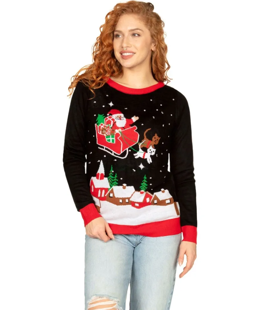 Is it a bird? Is it a plane? Is it a bunch of kitties driving Santa’s sleigh? Yes it is. This is one ugly Christmas sweater that you’ll be talking about long into next year. We’re throwing out the reindeer and turning up the heat in this long-sleeved Christmas sweater. Just when you thought cats couldn’t be any more awesome.