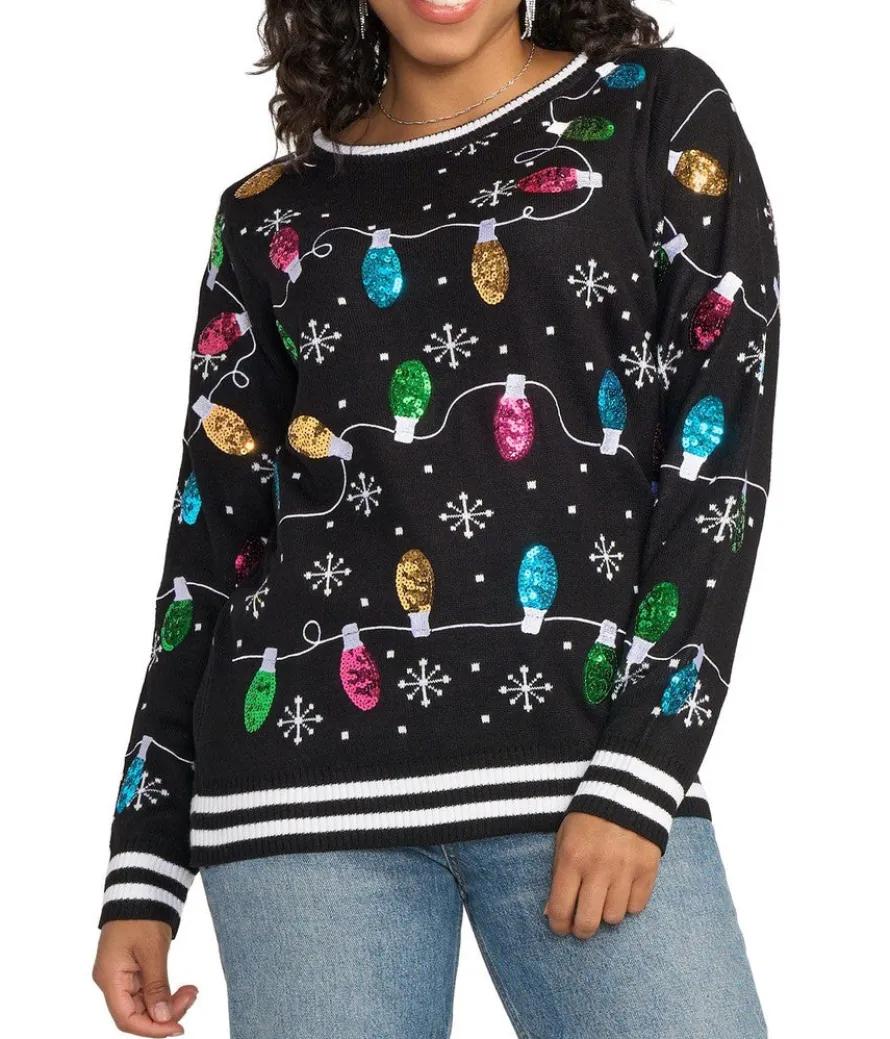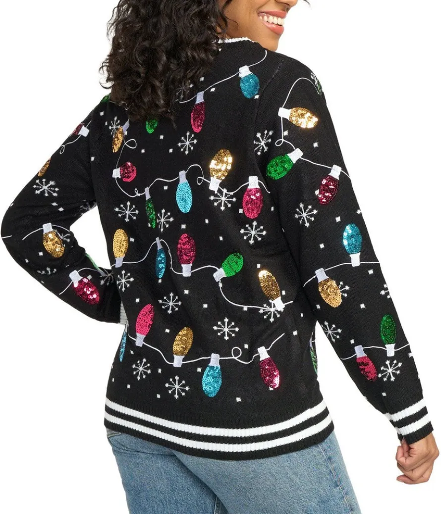 Normally, we’d say don’t string us along. But when the string is full of never-ending sparkly Christmas bulbs, we’re suddenly okay with it. We can’t even see where the string ends, which makes us even more filled with holiday spirit. Ravel up and bring on the relaxation in the Women’s Midnight String of Lights Ugly Christmas Sweater!