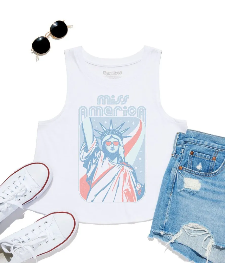 If The Statue of Liberty had comprehension skills, she’d be heartbroken to know that she isn’t eternally, automatically Miss America. Imagine standing your entire life, bearing all weather that is thrown at you, and even letting everyone watch you change from your cute copper color to your current green situation, only to be told there’s a new young Miss America crowned every year. Unreal. Pay her due respects in the Women’s Miss America Cropped Tank Top.