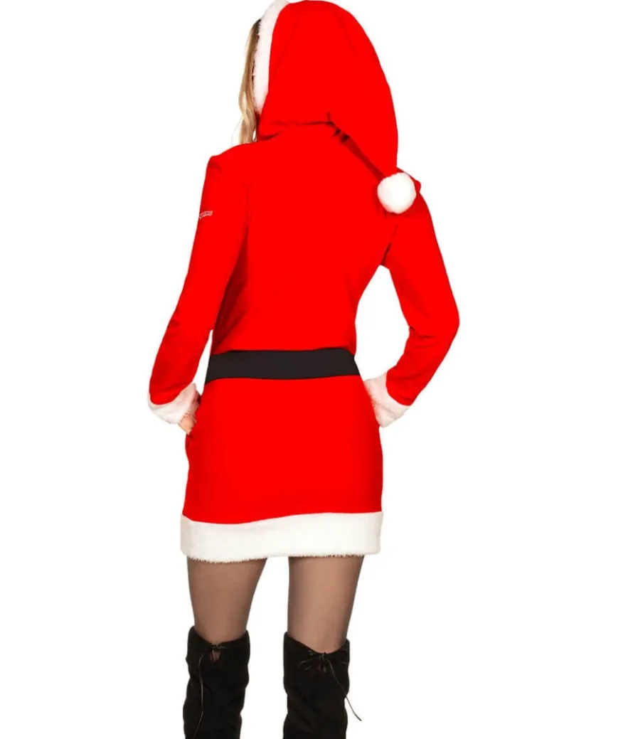 Santa gets all the credit at Christmas! We’re putting an end to that with a nod to his long-suffering wife, Mrs. Claus. Who else has to deal with an overweight husband who’s loved by women all around the world and works 364 days a year? Stand in solidarity with this oft-forgotten heroine in our Mrs. Claus Christmas Sweater Dress. It’s cute enough to wear to the office Christmas party and cozy enough to turn into nightwear – it even has its own hood! Channel your inner Mariah Carey as you strut around in this red and black ensemble complete with a fur trim motif.