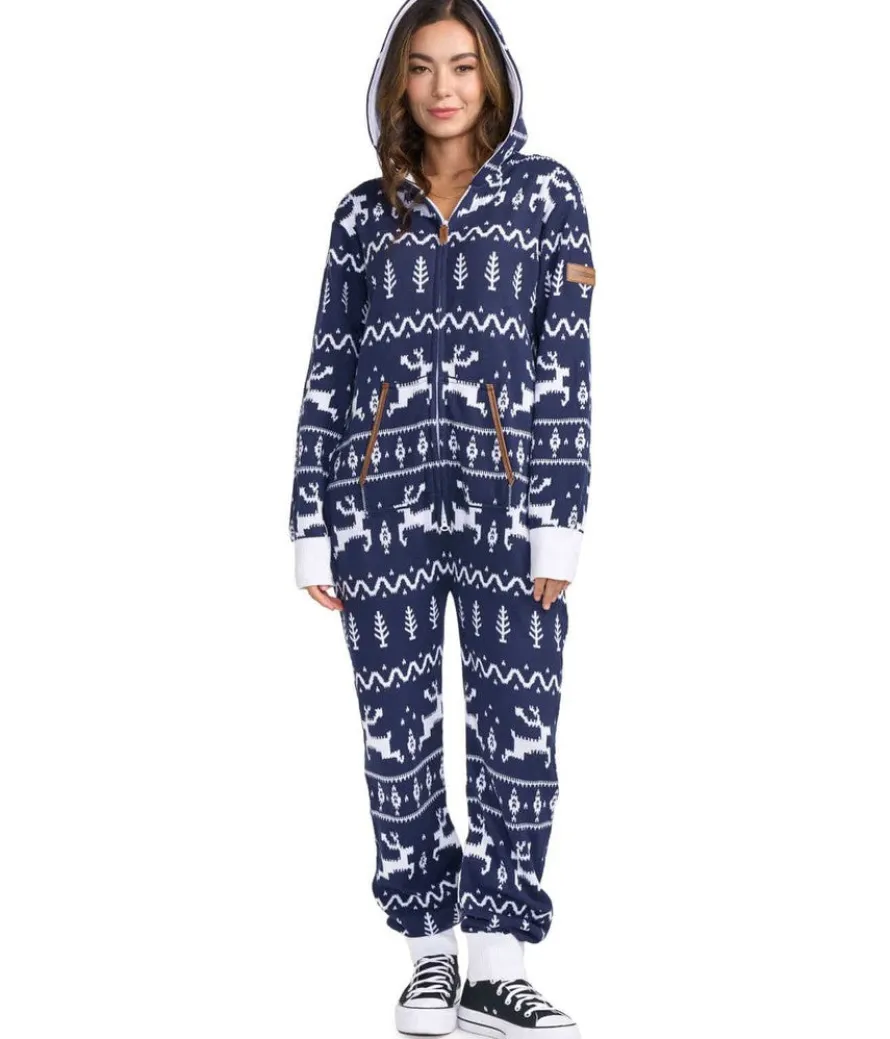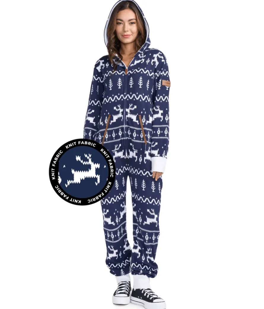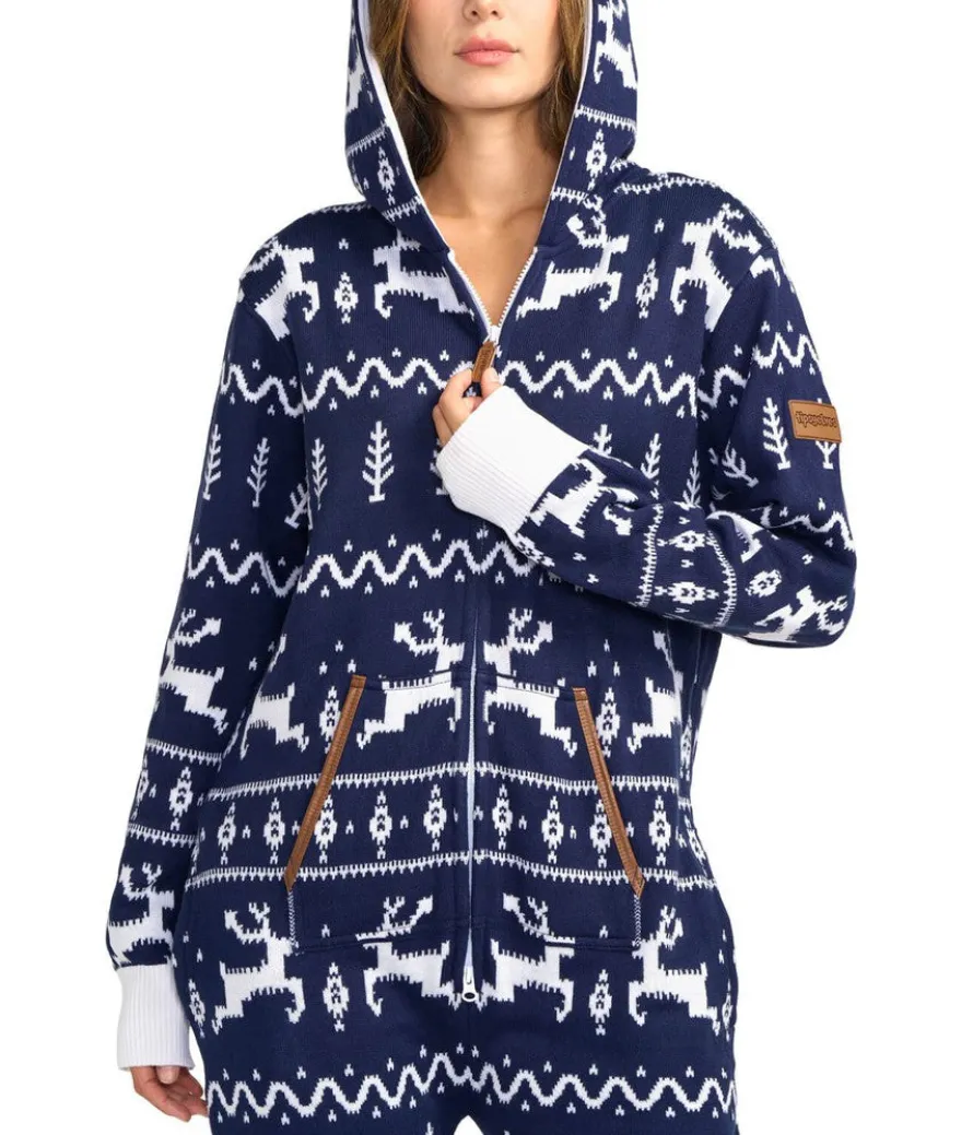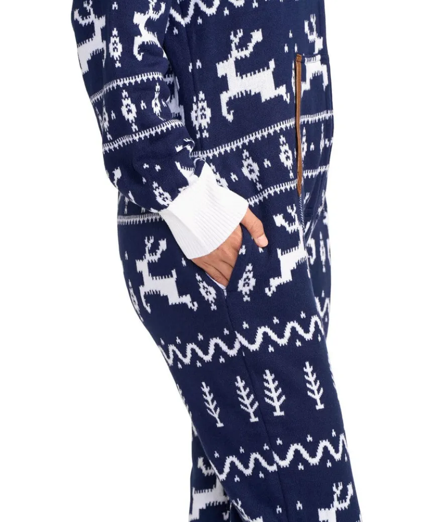 For the nights when you’re not feeling your best, it’s nothing a little bit of navy can’t fix. Easy, good lookin’ and the right amount of head-to-toe Christmas cheer, the women’s Women’s Navy Fair Isle Knit Jumpsuit is your new Christmas staple. Flattering for all and for all a good night!