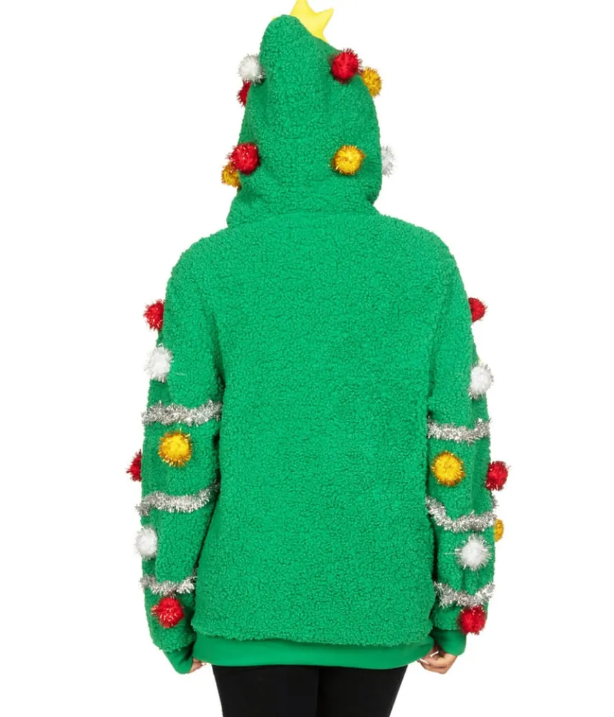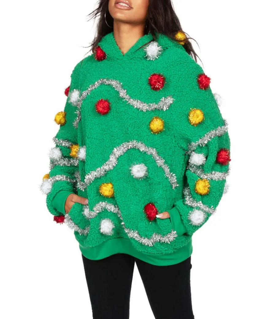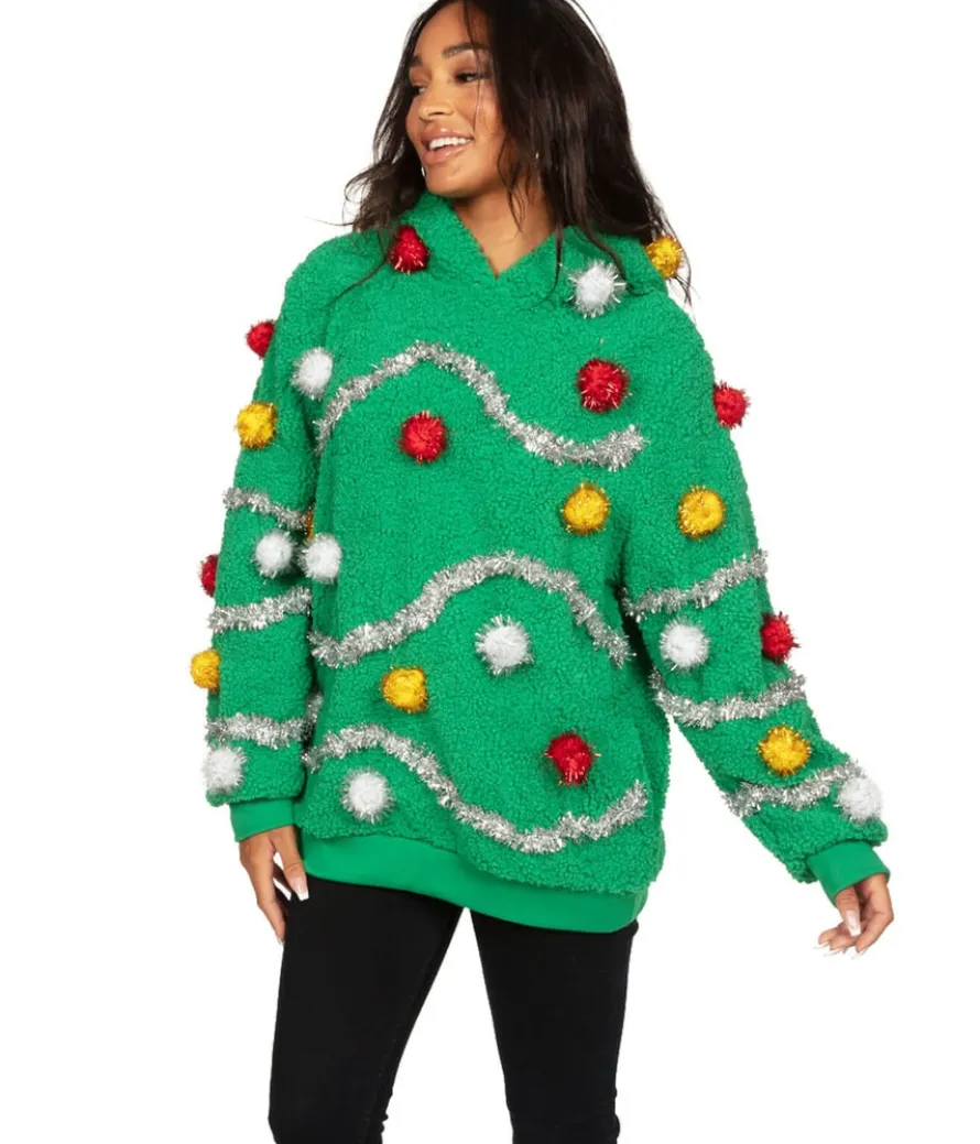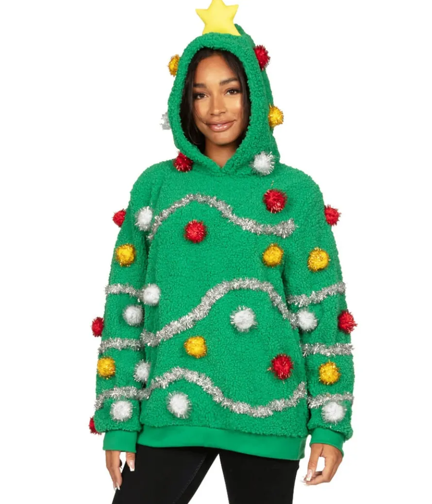Stay festive and cozy this winter in this Women’s Oh Christmas Tree Hooded Ugly Christmas Sweater! Featuring a festive Christmas tree design blanketed across a comfortable hooded silhouette, you’ll be making merry memories all season long.