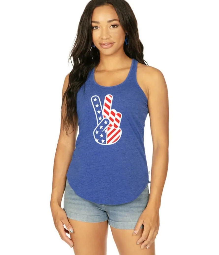 Give yourself a laid-back summer and a happy Fourth of July in this red, white, and peaceful tank. It’s designed to keep you chill no matter what the season brings. We recommend wearing this one with our patriotic shorts for a complete outfit. But a long, flowing skirt would work as well-