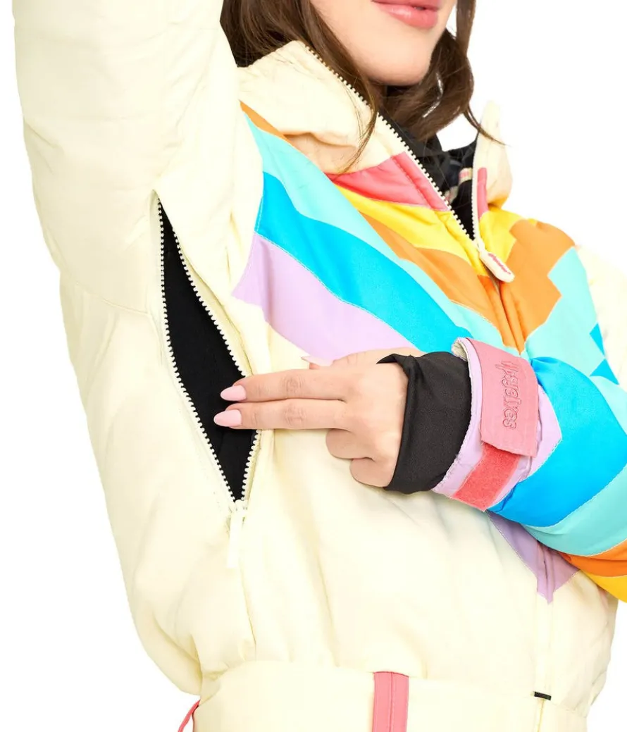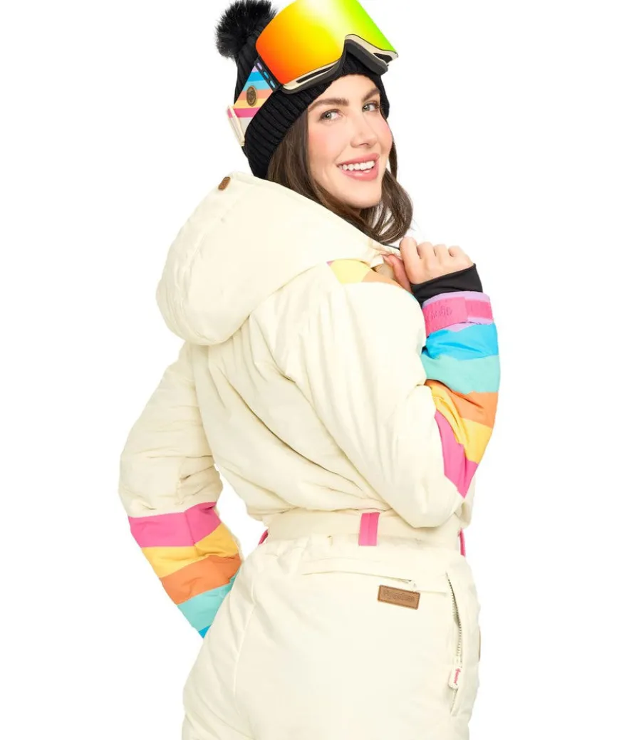 Somewhere, over the rainbow…this girl shreds. The Women’s Retro Rainbow Snow Suit may be a bit of a throwback, but you’re absolutely shredding the mountain in present day. Now fly those colors and get down the mountain.