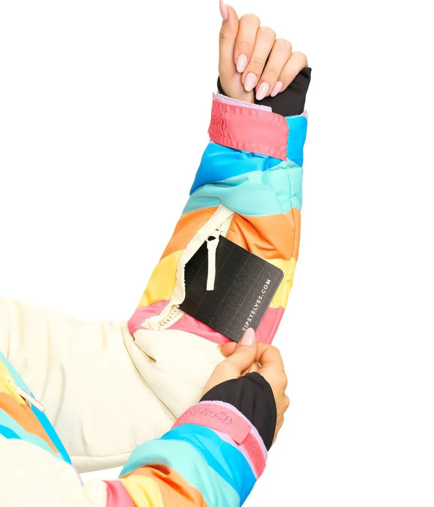 Features: | INSULATED SNOW SUIT TO TRAP IN BODY HEAT. TIPSY TECH WATERPROOF OUTER SHELL. MOUNTAIN TOUGH WATERPROOF ZIPPERS. LIFT PASS ARM POCKET. LIFT PASS LOOP ON WRISTBAND. WATERPROOF STORM HOOD. ZIPPERED HIP POCKETS AND BACK PANT POCKET. ADJUSTABLE WAIST. ADJUSTABLE CUFF AT ARM. INTERIOR CHEST POCKET. ZIPPERED LEG VENTS FOR EASY SKI BOOT ACCESS. ZIPPERED VENTS ON ARMPITS AND INNER THIGHS. PROTECTIVE FABRIC AT INNER ANKLES (KICK PANELS). EPIC STYLE THAT NEVER QUITS. |