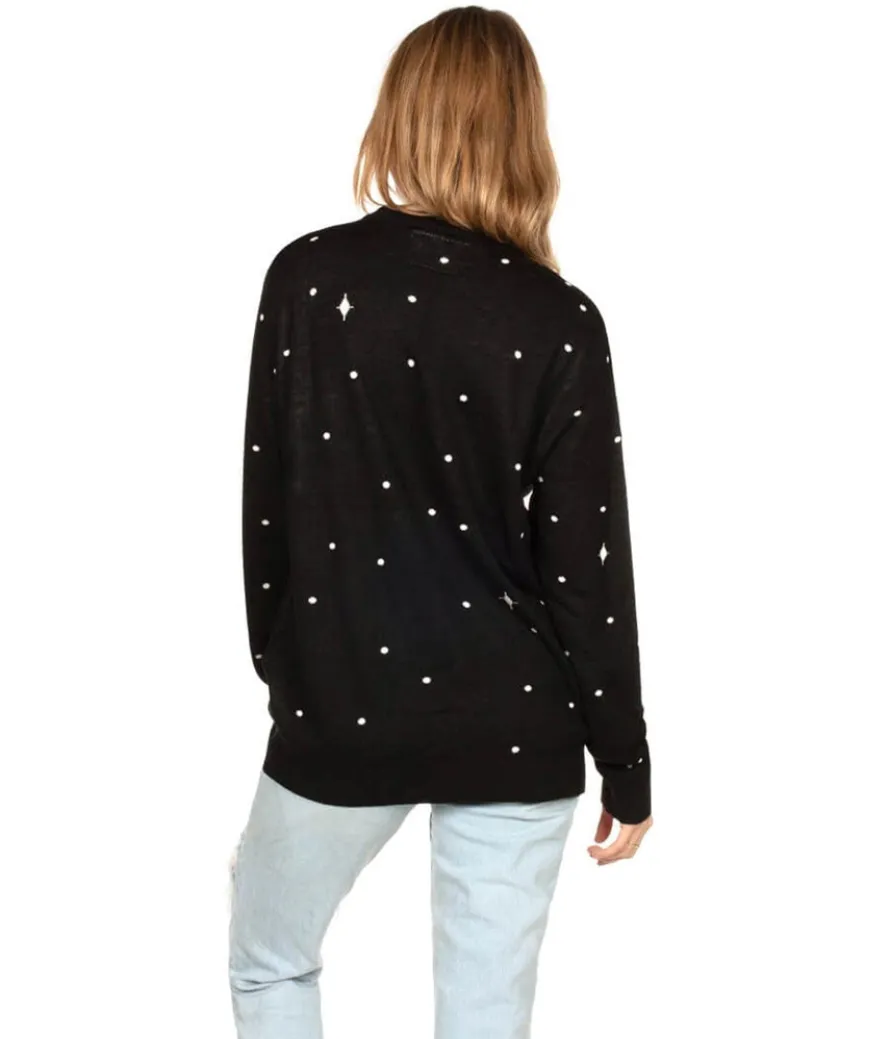 Model is wearing men’s sweater in size medium for an oversized fit.