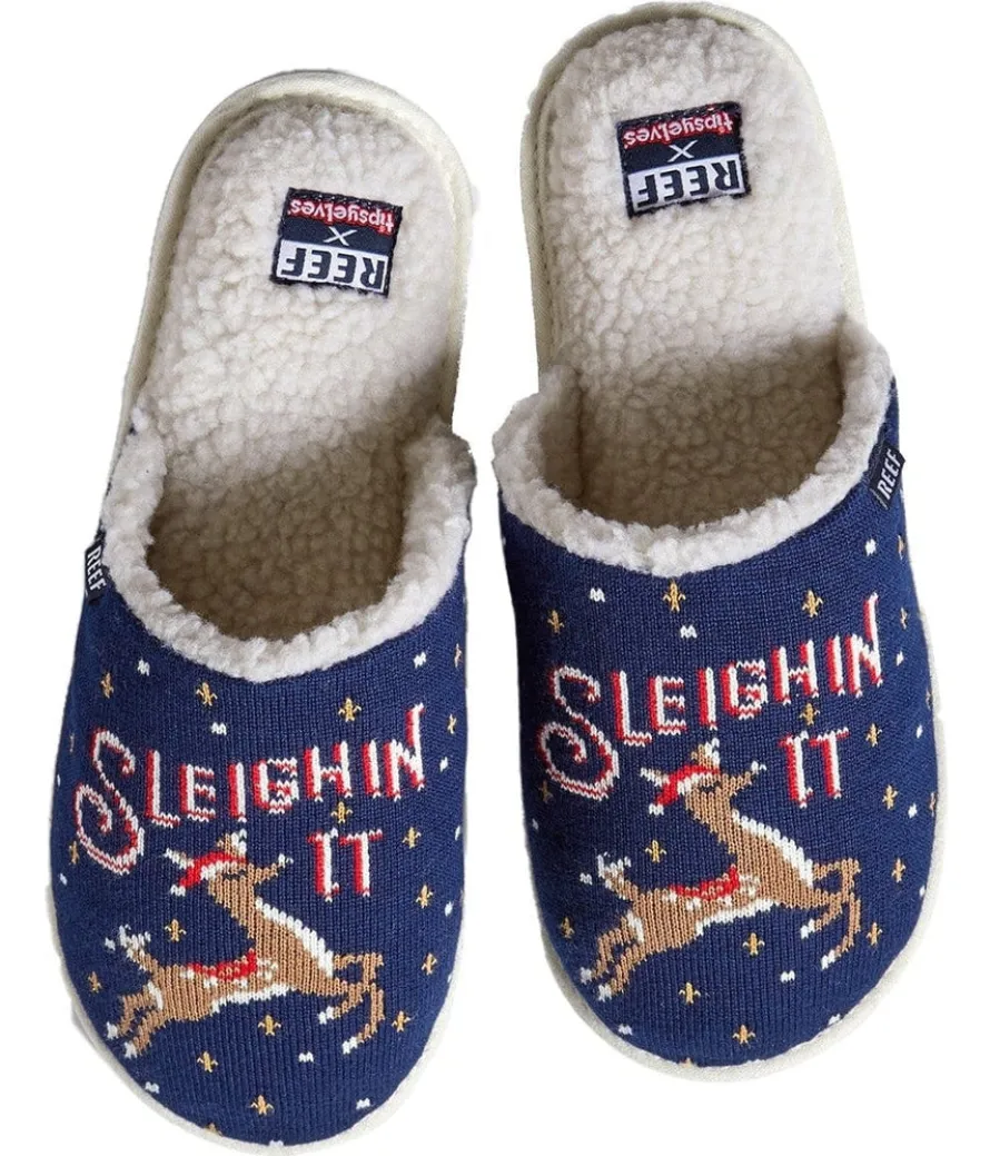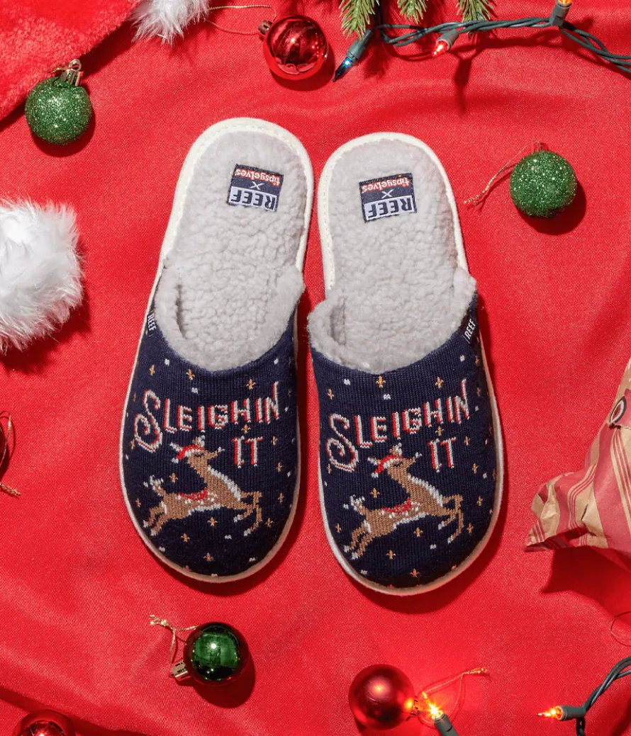 Santa might think he’s slingin’ and sleighin’ enough for all of us, but there’s always room for more. Show off what you’re working with in the Women’s Sleighin It Reef Slippers! Even though today might be an off day and you’re full chill on the couch, once you step outside there’s no question that you’re sleighin’ it. These slippers feature a flying reindeer leading the sleigh, which is basically your spirit animal. Go fly away, you natural leader you.