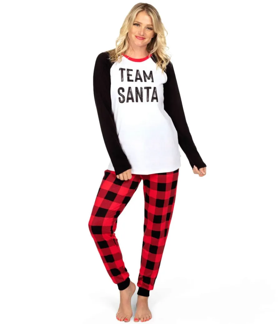 As a parent, it’s our role to model behavior for our children. (We’re guessing that’s where the term “role model” comes from?) And there’s no better time to make this happen than during the holidays, when it’s time for peace on earth and goodwill toward men. With this Women’s Team Santa Pajama set, you model those values for your little ones and declare the importance of family. The Claus family, to be exact. To complete the set, your buffalo plaid bottoms feature side pockets and drawstrings at the pants. Here’s to Team Santa!