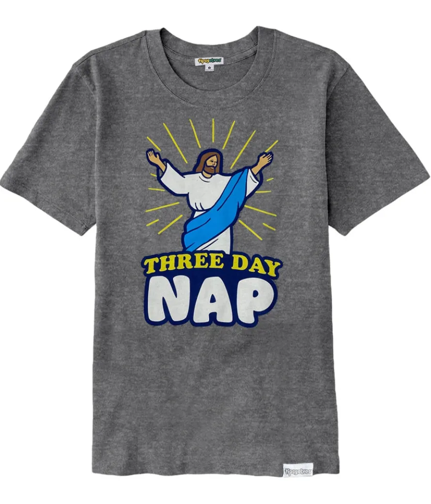 Should we take our award now, or later? Sleeping over eight hours is a huge feat in some people’s books, and we will not be shamed for accidentally falling asleep for three hours – or three days. We welcome it, in fact, and so did Jesus. We’re celebrating uninterrupted rest and the big man in the sky just the way he’d want it in the Women’s Three Day Nap Oversized Boyfriend Tee.