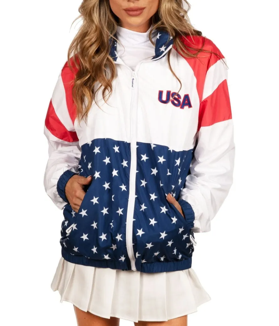 USA! USA! US…ayeeee girl! We see you repping your country out there. Show off your stars and stripes in the Women’s USA Windbreaker Jacket! With stars covering your lower half and red stripes all about, you’re basically an olympic gold medalist. It’s just too easy to pretend – it’s our little secret.
